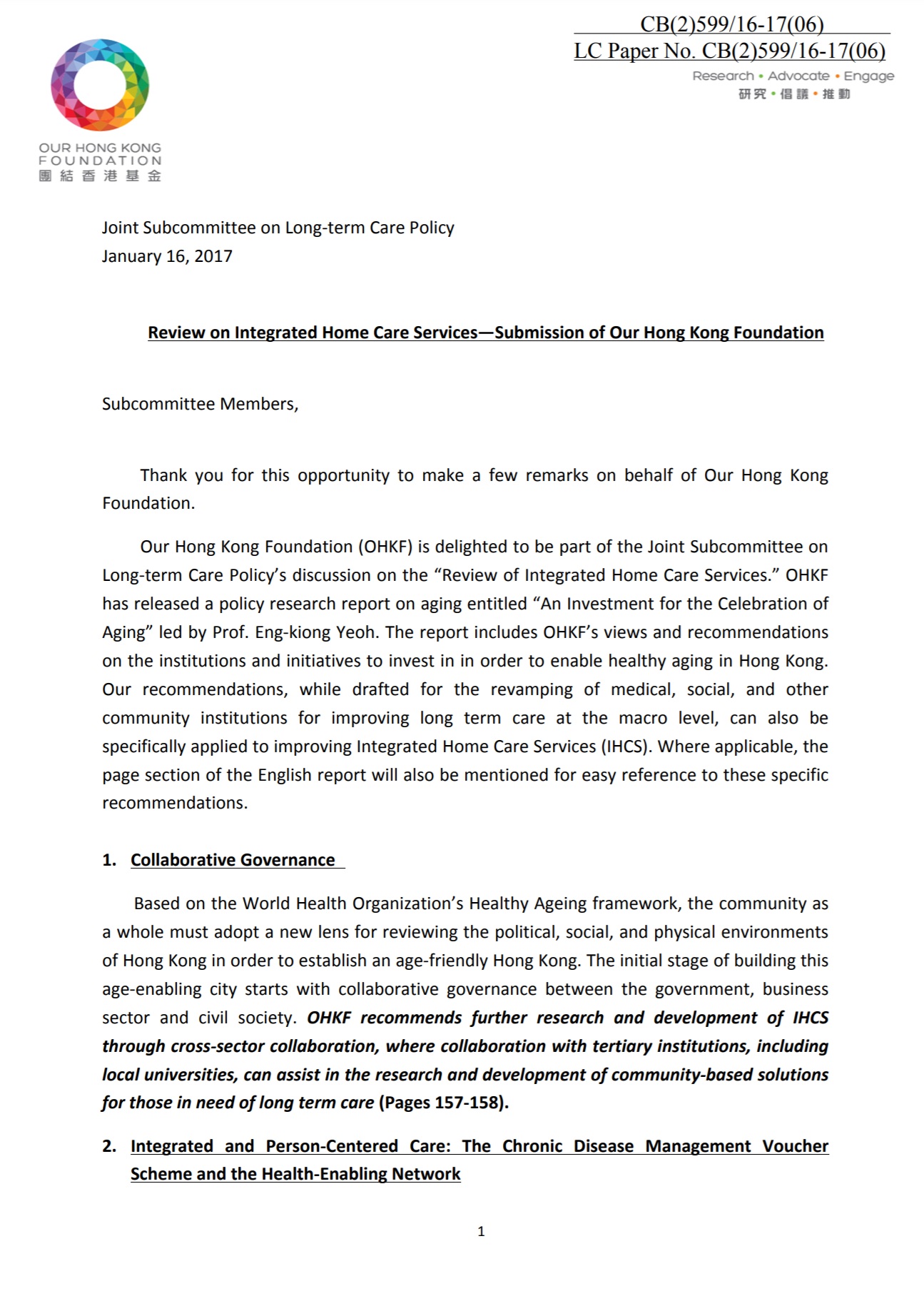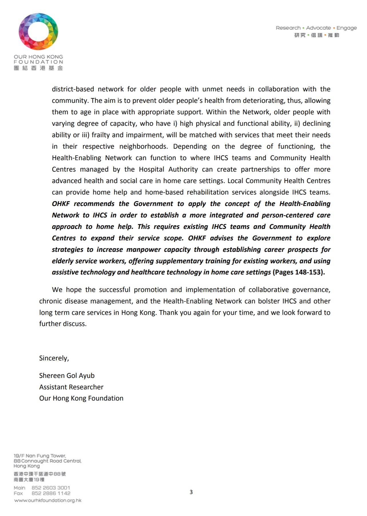 Beyond the research and writing of the report itself, I advocated for OHKF’s policies at Hong Kong’s Legislative Council. An original deposition was submitted to the Council. Entire deposition written and proofread by me.