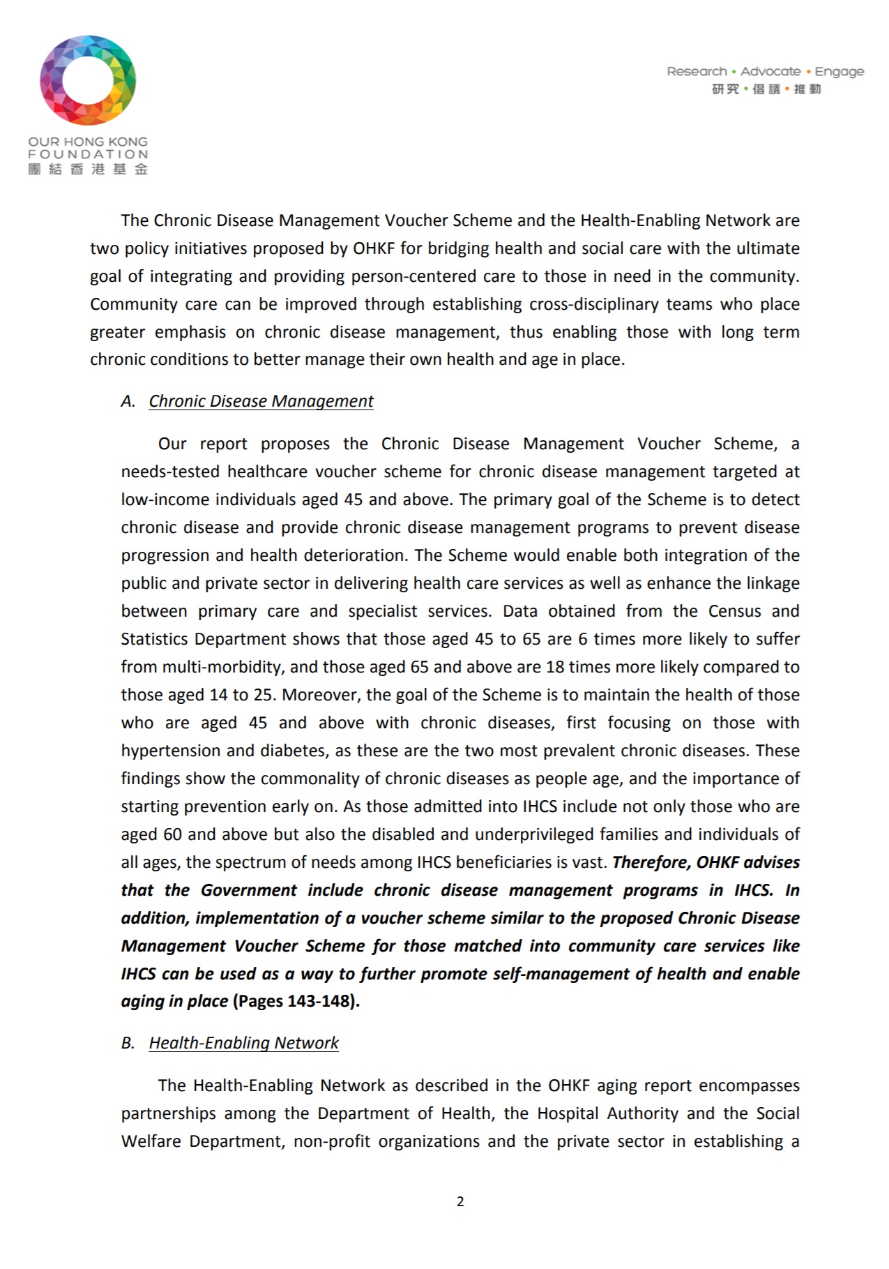 Through grassroots interviews, analysis of government data, and extensive desktop research, my fellow colleagues and I at Our Hong Kong Foundation (OHKF) developed Hong Kong’s first comprehensive policy report on the state of the city’s health and social care system for the aging population. Recommendations were provided, including a framework for a new healthcare voucher system and calls for stakeholders to make concerted efforts in transforming Hong Kong into an age-friendly city.